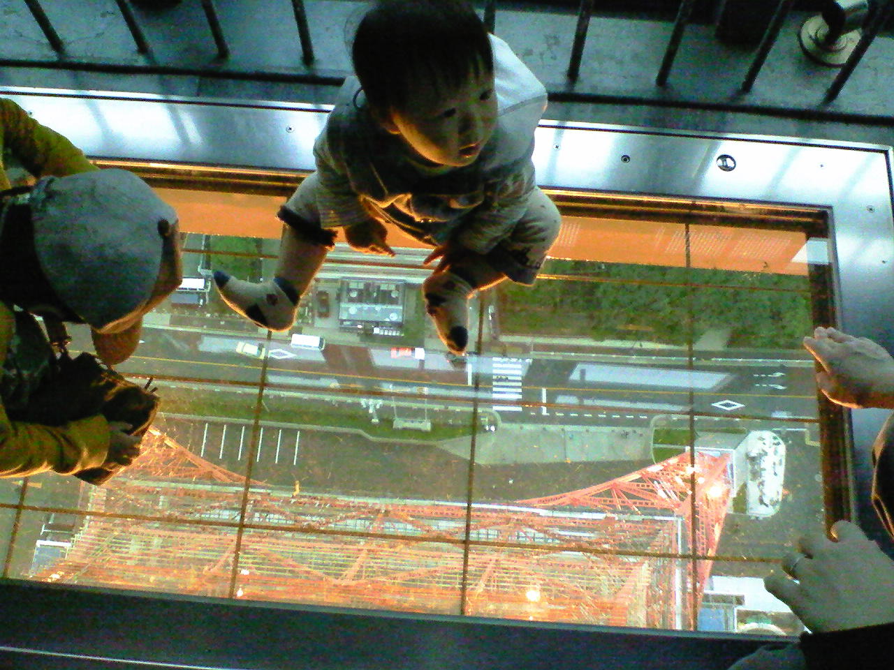 展望台の一部がガラスになってて下が見えるんです。きょぴはそこが気に入った様子。