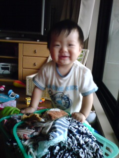 洗濯物干しを手伝ってくれています(o^-^o)