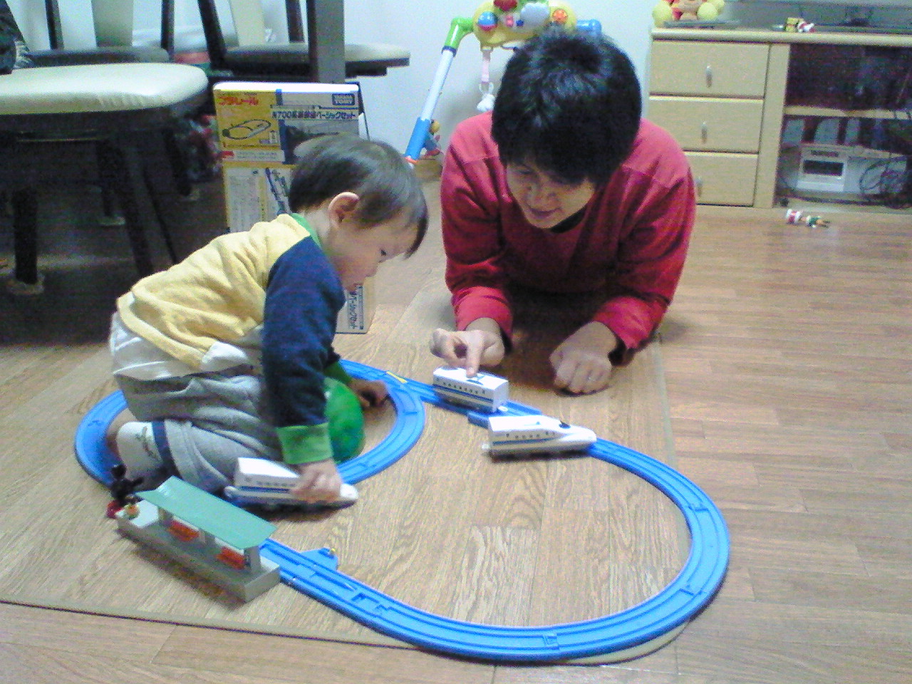 パパサンタは怖かったみたいで泣いてしまったけど、プレゼントのプラレールはとっても喜んで夢中で遊んでました(^^)v