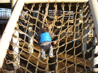 網の遊具、ここまで自分で登ったんです!!すごいでしょ(^ー^)v